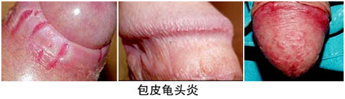 表现为包皮和龟头可见红斑,表面光滑,并有小疱疹,红斑的边缘较清楚,急性发作时有糜烂、渗液。
